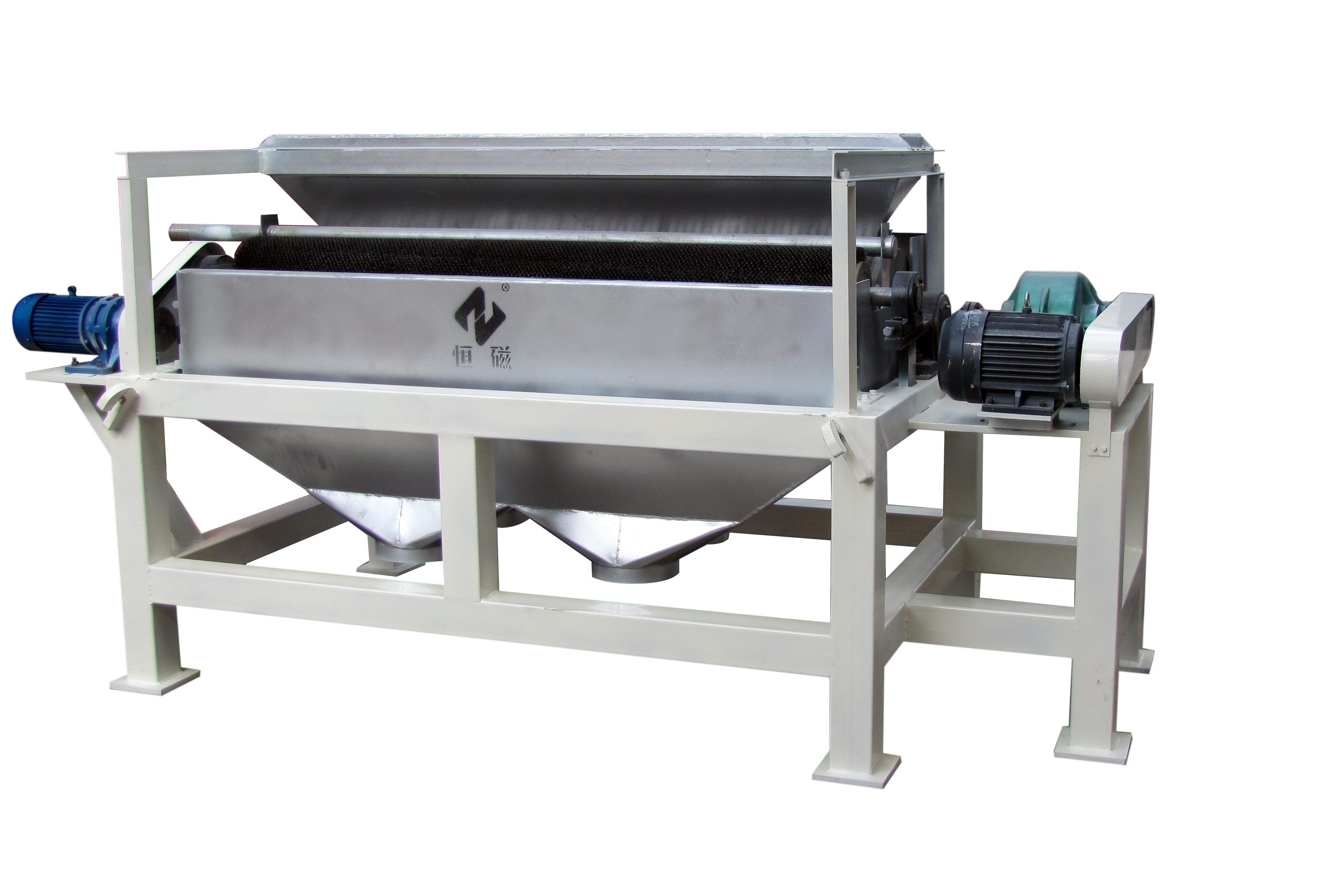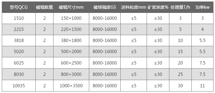 QCG强磁辊式国产在线麻豆视频原理为物料经料仓通过导料盘进入磁场区,磁性矿物被吸附在磁辊表面旋转到达精矿区,毛刷将吸附在磁辊表面上的磁性矿刷脱,在高压水的喷射下落到精矿斗里,部分未被吸附的磁性矿粒、非磁性矿粒和磁性较弱的矿粒进入到下一步再选,实现10辊组合,可对物料进行多达10次的分选,特别是对强磁性、中磁性、弱磁性共存矿物有显著的分选效果。