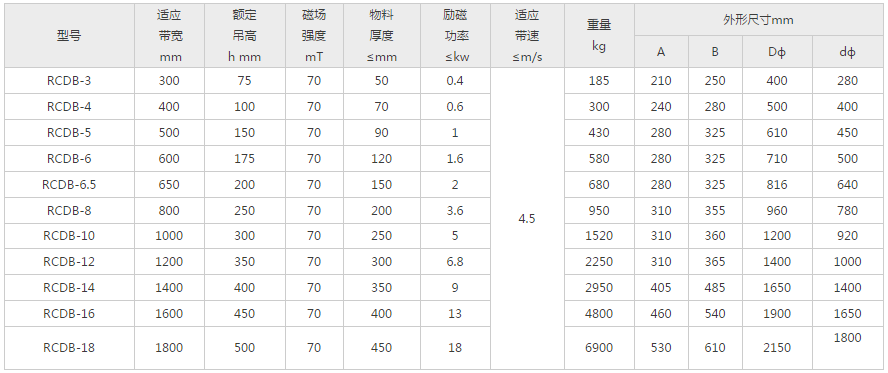 RCYD型自卸式麻豆视频传媒APP下载官网与PDC系列盘式麻豆视频传媒APP下载官网、RCDY系列麻豆视频传媒APP下载官网等同。是用于清理粉状或块状非磁性物料中杂铁的除铁装置。其内部采用电工专用树脂浇注,自冷式全密封结构,具有透磁大、吸力强、防尘、防雨、耐腐蚀等特点,在恶劣的环境中仍能可靠运行。行走装置的配备可由客户自己选择。